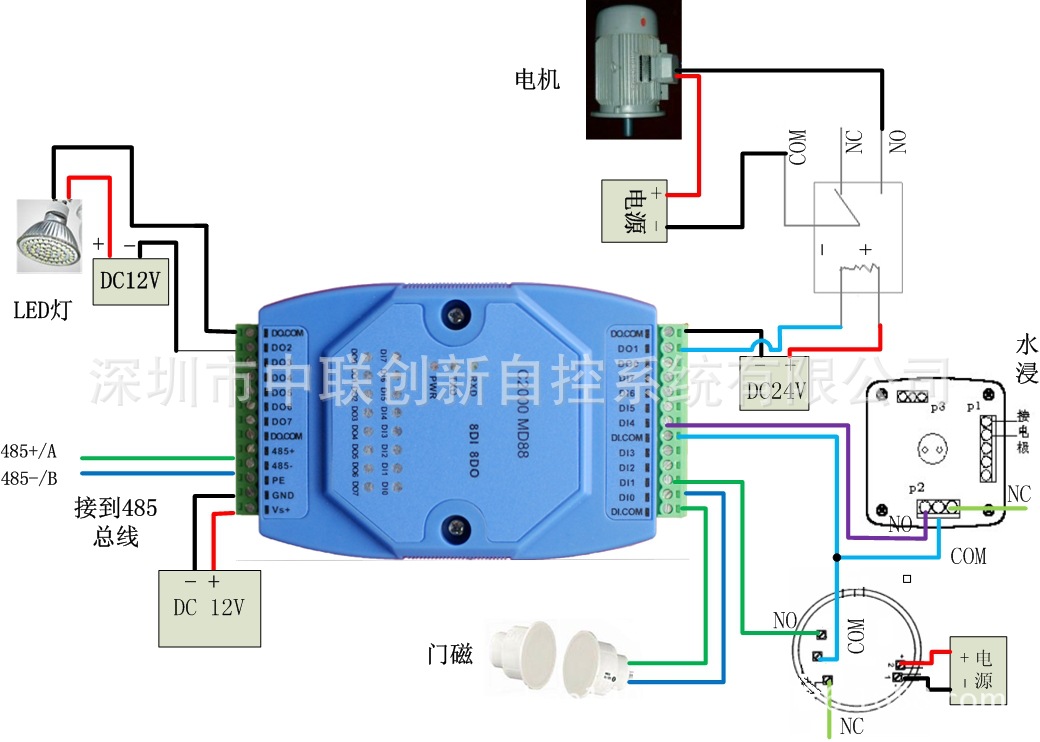 繼電器開關(guān)信號轉(zhuǎn)串口采集 485干接點控制模塊的電源需求